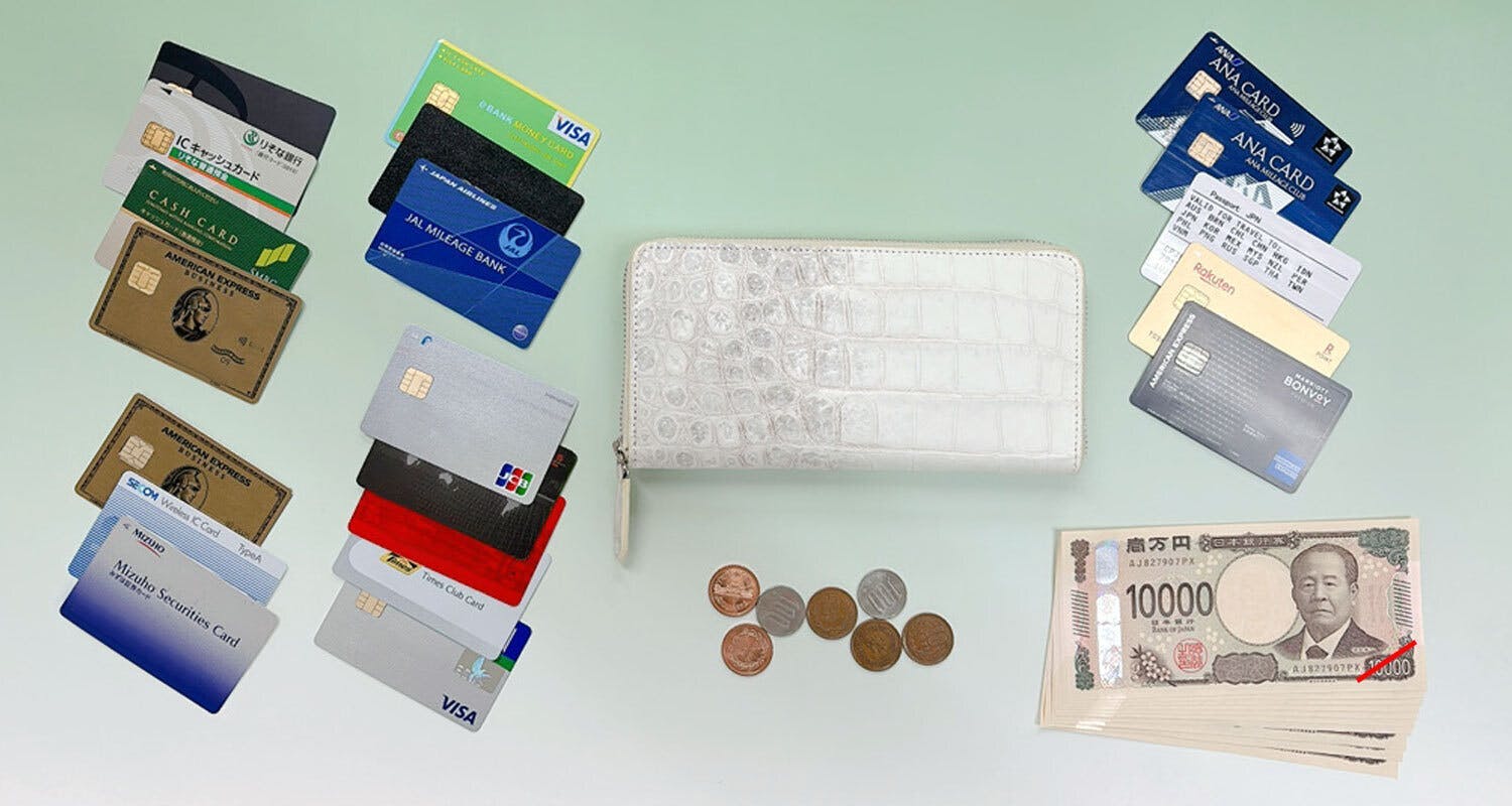 最大でクレジットカードやショップカード、病院の診察券などのカード類21枚、お札を10枚、小銭を8枚程度、日常のおでかけに必要な量をたっぷりと収納することができます。