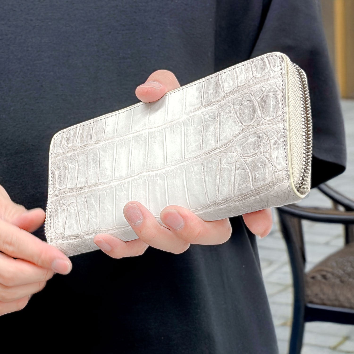 本製品は天然のクロコダイル革を使用しているため、ウロコの模様や色合いに個体差がございます。素材の特性としてご理解の上、ご購入ください。